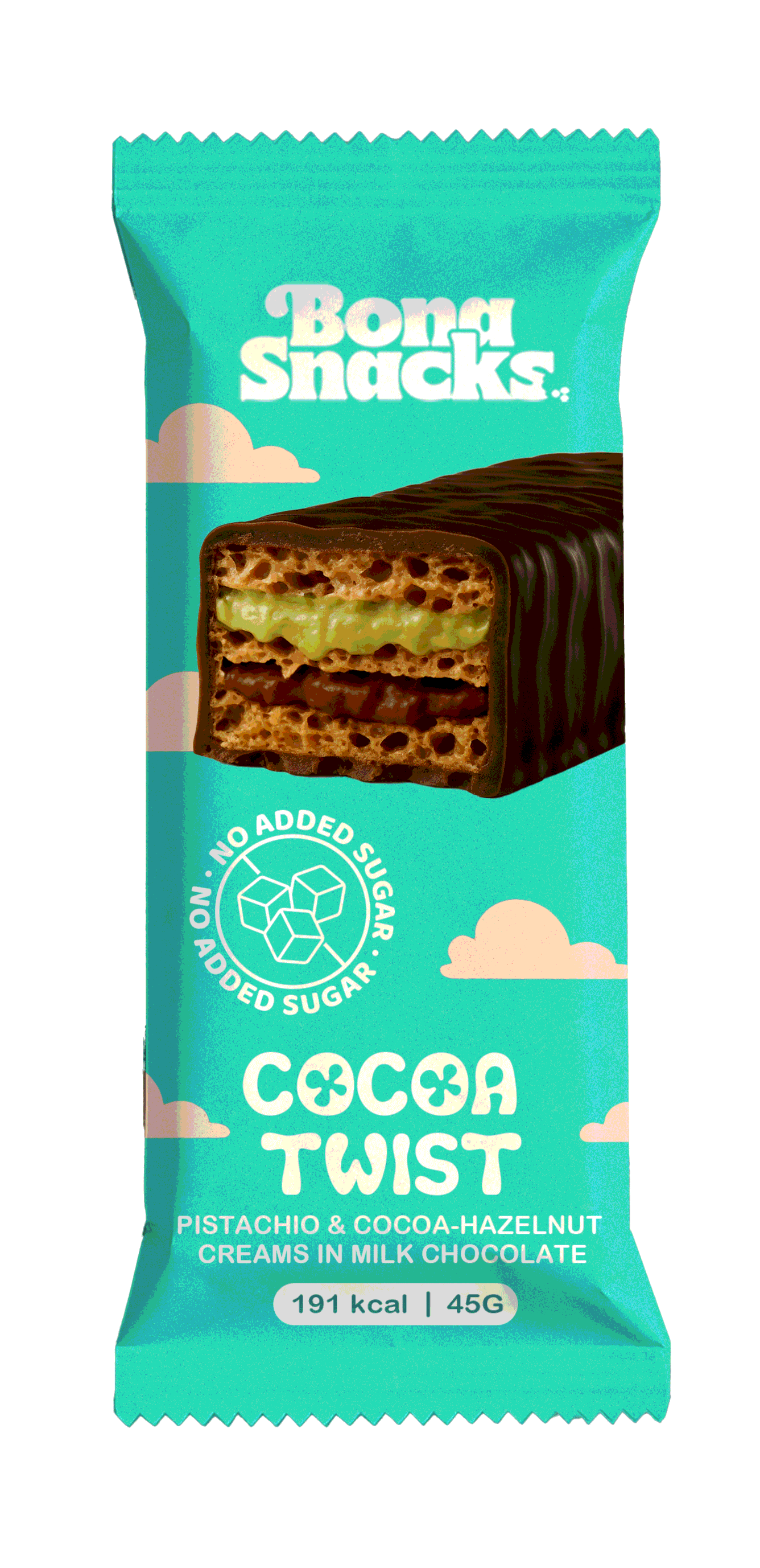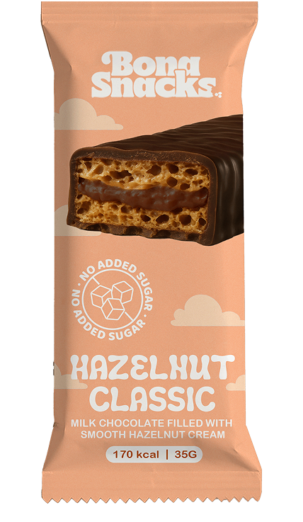 BonaSnack bars are tasty and light snacks with no added sugar. Crispy wafers and delicate creams in milk chocolate combine goodness and pleasure, turning every bite into a joyful moment.